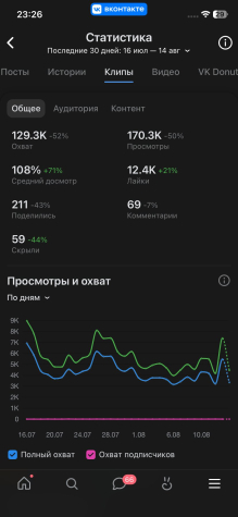 Есть видос который залетел на 2 млн просмотров и 39к лайков.