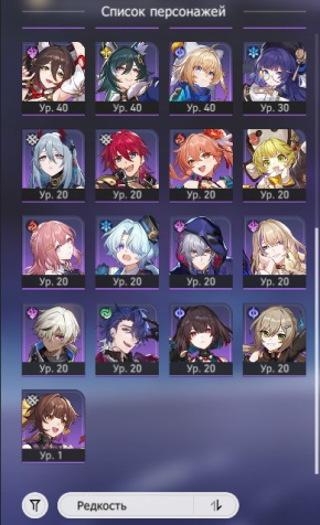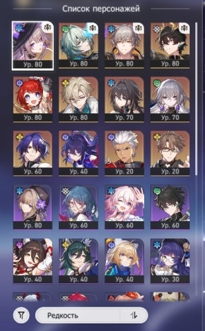Подробное описание: Легендарные персонажи: Зеле, Великая Герта э1, Анакса, Авантюрин, Освободитей пустошей, Трибби, Жуань Мэй, Броня э2, Доктор Рацио, Арчер, Вельт.