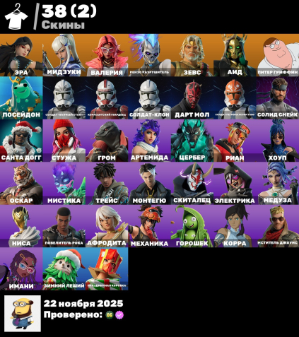 🔥ЖИРНЫЙ АККАУНТ🔥СМЕНА ПОЧТЫ🔥ПИТЕР ГРИФФИН🔥ЗВЕЗДНЫЕ ВОЙНЫ🔥КОРРА🔥ЗЕВС🔥КРАСИВЫЕ СКИНЫ🔥ОПИСАНИЕ👇, Продажа, скины 38
