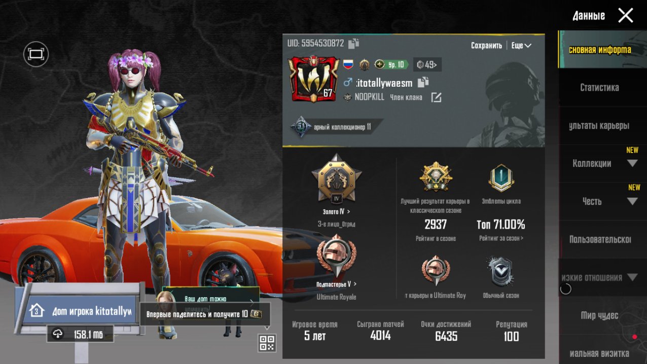 🔥🔥🔥На аккаунте есть 3 X костюма и много мификов и прокачиваемых оружиях и тачек, 67 LvL игрока🔥🔥🔥, Нет BATTLEGROUNDS Plus