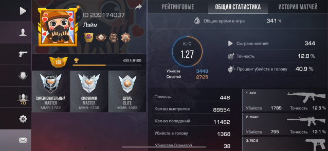 Подробное описание: Звание master в соревновательном и союзниках,135lvl, ID: 209174037, есть нож m9 ^Amber koi^, перчатки ^burning first^, и много скинов с наклейками