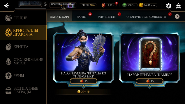 Краткое описание: КИТАНА МК2 НА Х + MИЛИНА MK1 HA X + ЭПИКИ + 10 алмазных карт на Х + 11.000 КРИСТАЛЛОВ + 550.OOO ДУШ