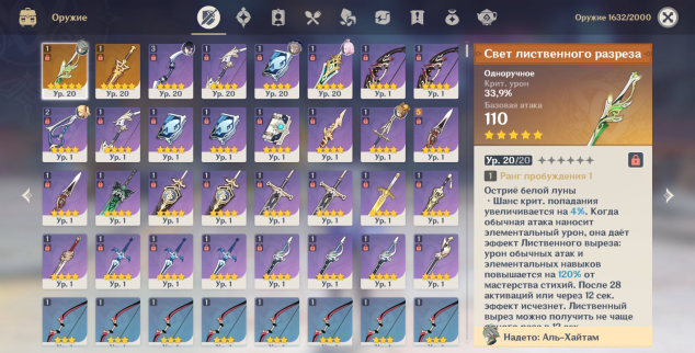 🌾5: оружие — Свет лиственного разреза, Ключ Хадж-Нисут. ☆
