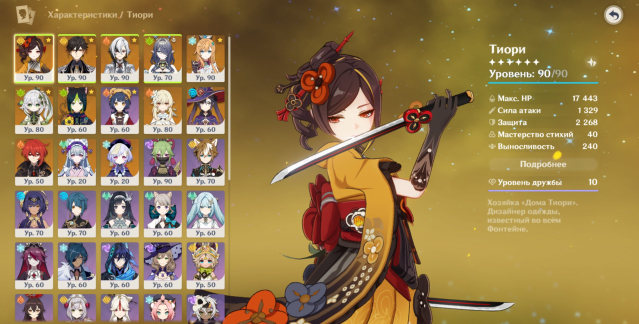 🍈5: персонажи — Тиори С6, Чжун Ли, Арлекино, Эскофье, Нахида, Лаума, Тигнари С1, Мона, Дилюк, Ци Ци, Мидзуки .