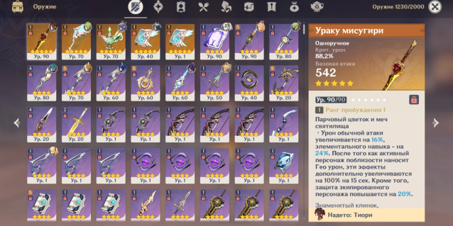 🎋5: оружие — Ураку Мисугири, Небесное крыло, Сновидения тысячи ночей, Небесный атлас х2. ☆
