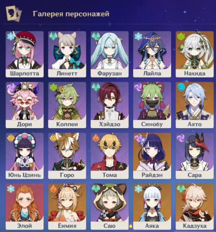🔹 Гань Юй + сигна 🔹 Кадзуха + сигна 🔹 Аяка + сигна 🔹 Беннет С6 🔹 Элой 🔹 Ода Анемонии 🔹