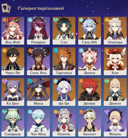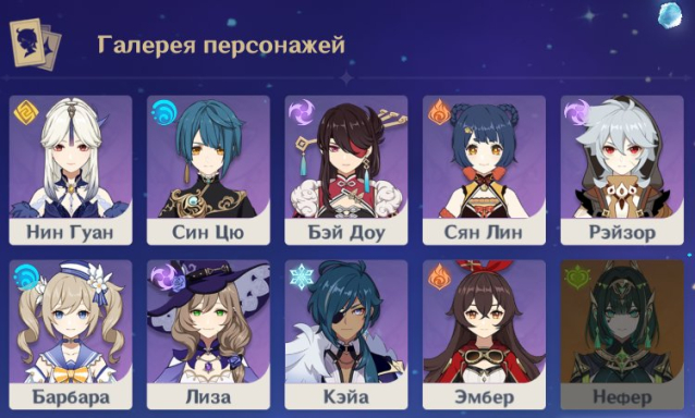 🔹 Гань Юй — Цветок сумрака 🔹 Ке Цин — Яркая легкость 🔹 Барбара — Летний блеск 🔹 Нингуан — Флер орхидеи 🔹 Фишль — Сон вечной ночи 🔹