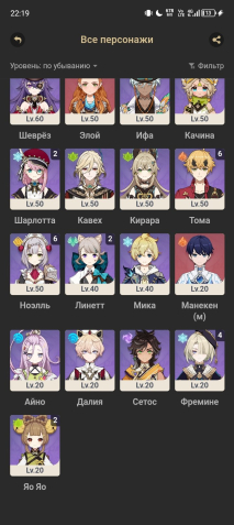 Краткое описание: Персонажей 73. 54 лег. Шилонен с1, нахида с1, райден с1, тигнари с4, невиллет, е лань и др