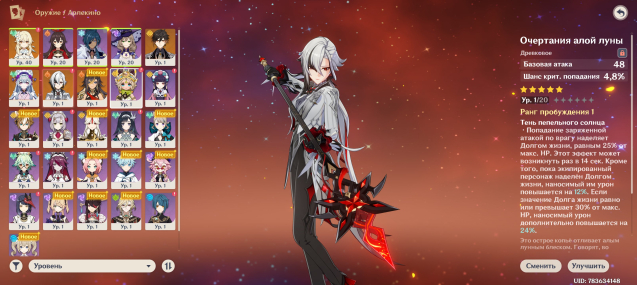 🎮 Персонажи: 🩸 Арлекино C1 + Очертания алой луны 🩸| 🗻 Чжун Ли + Покоритель вихря 🗻