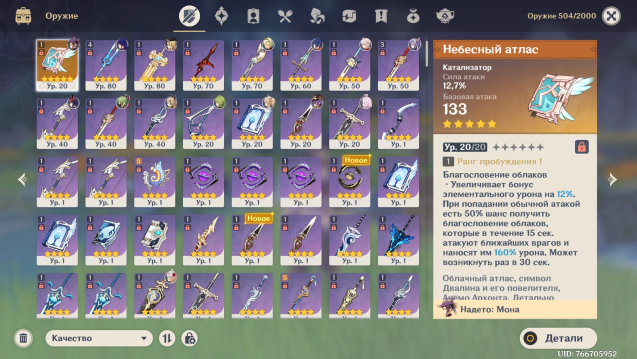 На аккаунте кучу легендарок, так же первые консты на Кэ цин и Джинн