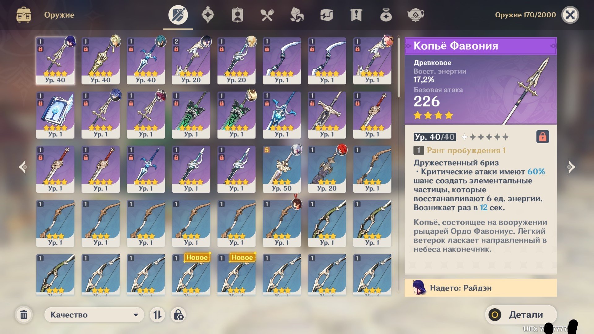 Краткое описание: Редкий UID 7**7777** + Аяка, Флинс, Е Лань, Райден, Элой + 3 ст. леги
