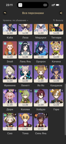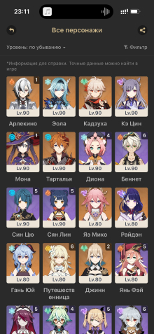 Краткое описание: Арлекино с1+ сигна, Кадзуха, Райден, Яэ Мико, Тарталья, Странник, Эола и тд