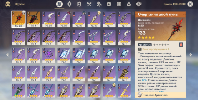 🎋5: оружие — Очертания алой луны, Лук амоса, Небесное величие. ☆