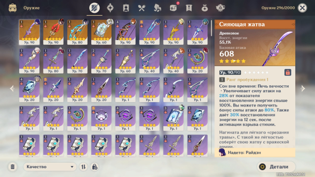 ✅ 5⭐️ Оружие: Сияющая жатва + Посох Хомы + Элегия погибели + Молитва святым ветрам
