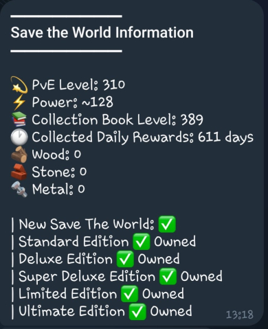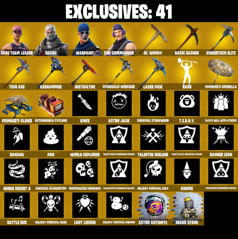 Подробное описание: На аккаунте полностью пройден режим Save the World. 133 мощь. Все оружие 130+ мощи. Пройдены ВСЕ ИСПЫТАНИЯ. Есть даже оружие Короля Бури. Отличный аккаунт под основу.
