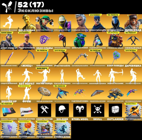 Краткое описание: ❄️Быстрая ВЫДАЧА❄️273 skins🔮PVE🔮Разведчик-Чемпион🔮Take The L🔮Кайло🔮Кастомка🔮Кира🔮Харли🔮Чан-Ли🔮Фреш