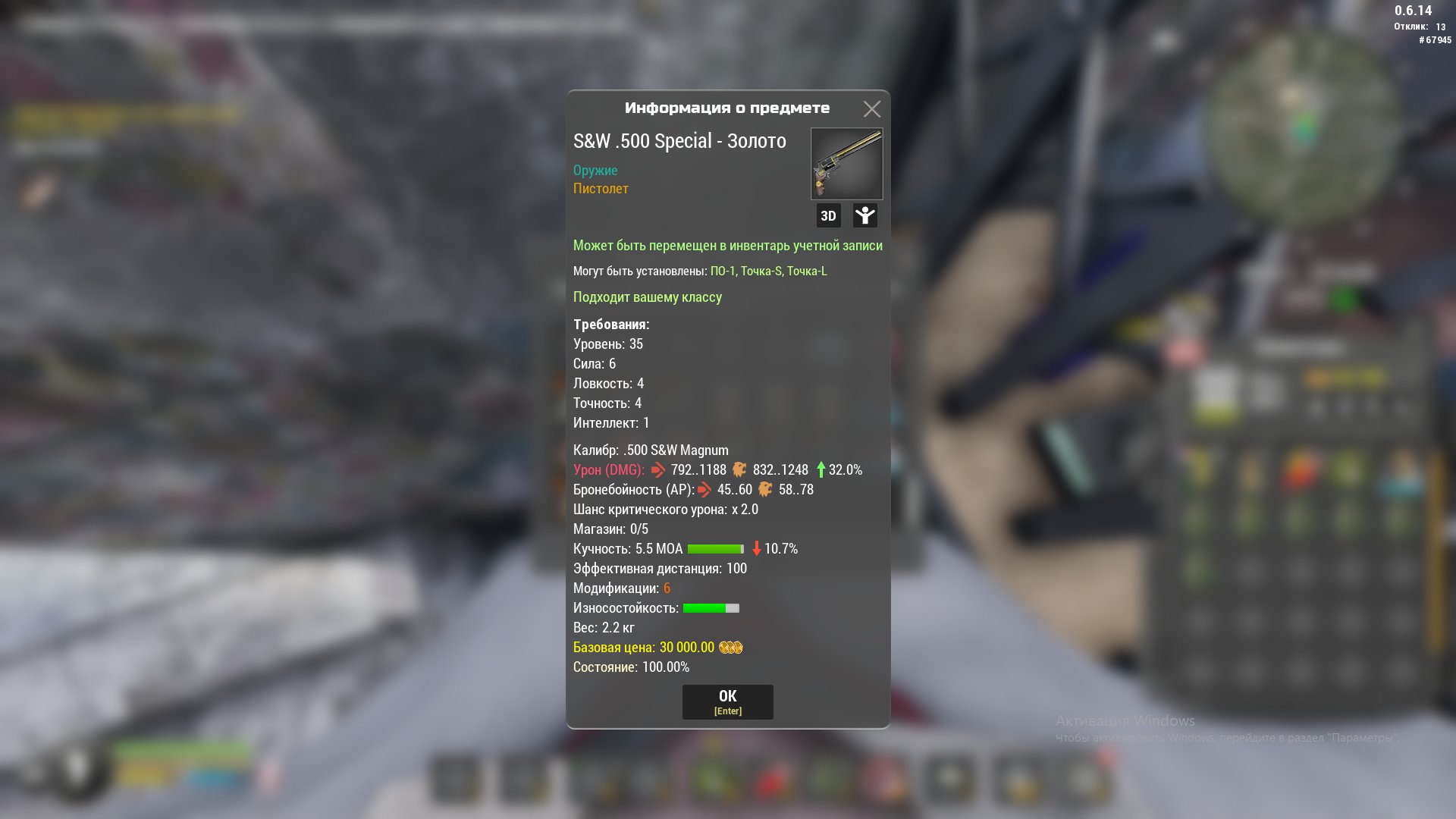 Сервер: RU-8Краткое описание: S&W .500 Special — Золото м6 32%урон -10 кучность 0 износ (любой сервер)