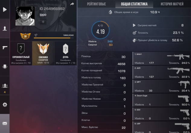 Звание: ChampionКраткое описание: 📍инвентарь на 500г📍чемпион в напах🍀аккаунт для новичка🍀