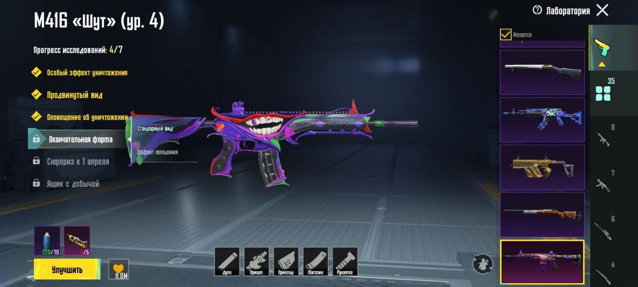 ГЛАВНЫЙ Скин: 😈 M416 «Печать преисподней» — Уровень 5 (Эффект убийства),M416 «Шут» — Уровень 4