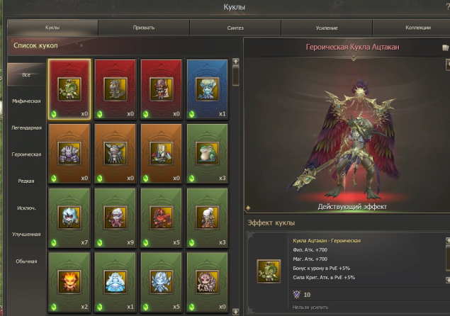 Также на wolf 1 ацтакан, чудовище, тарас красные. Когда будет мерж 2х серверов у вас будет 11 замечательных кукол.
