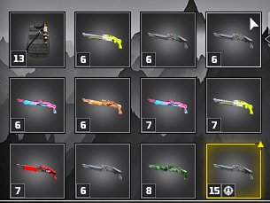 Подробное описание: на аккаунте есть почти фулл золотые жетоны, много оружия для передачи валюты, 30+ скинов (в том числе и донатный маскхалат), по машинам уникальная 2102 на бесключевом доступе (купить такую же нельзя, только выбить через донат), также на аккаунте имеется 180 брони и хилла