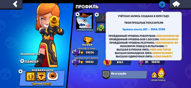 Краткое описание: 【 𝘉𝘳𝘢𝘸𝘭 𝘚𝘵𝘢𝘳𝘴 】🏆59,326 кубков 🗓️2019 год 🧑🚀85 персонажей 📶🤍24 ПЕРСОВ 11 СИЛ БП ЧЕК ОПИСАНИЕ