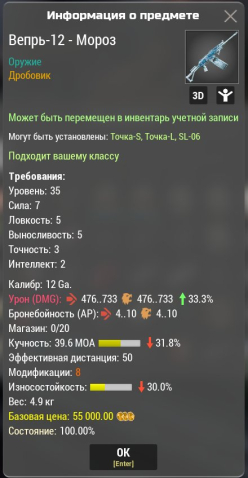Сервер: RU-1Краткое описание: Продам Вепрь12(Мороз)ПВЕ, 33.3-31.8-30(476-733) (Любой сервер)