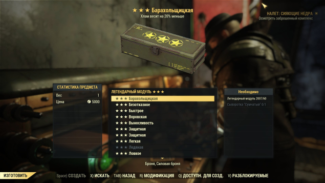 Имеется запас модулей легендарных свойств 1-4 уровня, можно создать и модифицировать любую вещь с нуля, либо переделать готовое