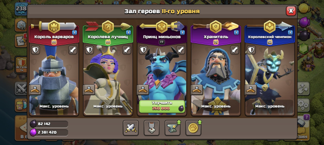 Уровень Ратуши: 17Краткое описание: 📌Продаю 17тх Герои 100/100/77/75/50🔥ЕСТЬ ЭПИК СНАРЯГИ (4 из них фулл )/ 22+ скинов📌