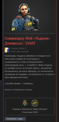 Краткое описание: Коммандер Мэй «Льдина» Джемисон | SWAT