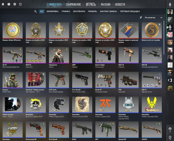 Множество качественных скинов, включая легендарные скины для оружия и одежды.