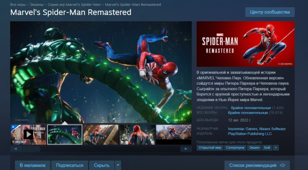 Регион: Другой регионКраткое описание: 🟥🟧🟥Marvel’s Spider-Man Remastered — Steam/Подарок/GIFT🟥🟧🟥