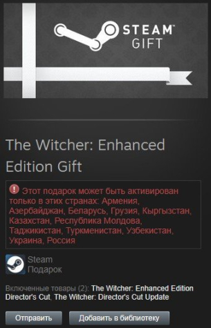 Подробное описание: Редкое предложение: Ведьмак 1 подарок для российского аккаунта steam (так же этот подарок может быть активирован в этих странах: Армения, Азербайджан, Беларусь, Грузия, Кыргызстан, Казахстан, Республика Молдова, Таджикистан, Туркменистан, Узбекистан, Украина).
