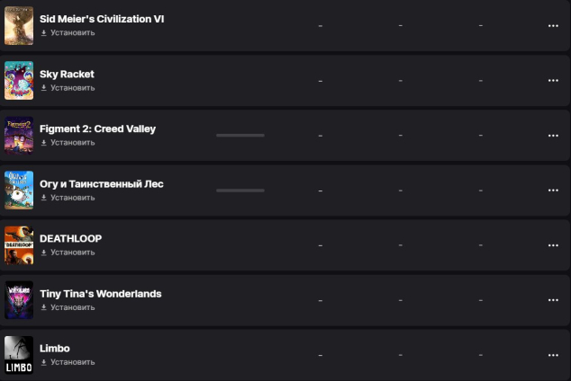 DEAD ISLAND 2, DEATH LOOP, SIFU, Tiny Tina's Wonderlands, Deliver At All Costs, Gigapocalypce, Happy Game, Limbo, Ogu and the Secret Forest, Sid Meier's Civilization® VI, Sky Racket, Figment 2: Creed Valley