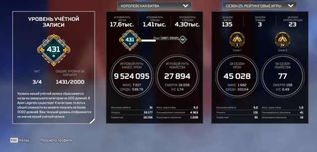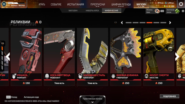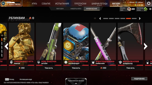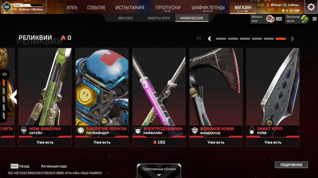 Краткое описание: APEX LEGENDS [11 реликвий / предаторы / 750+ легендарных скинов / ОЛД аккаунт]