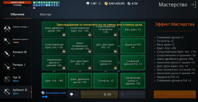 ℹ️ Другие Характеристики: Крит Атака 155%, Шанс Двойного Урона 142%, Шанс Тройного Урона 23%, Блокировка Оружия 100%, Увеличение Урона от Оружия 216%, Увеличение Урона от Умений 253%, Сопротивление Оглушению 73%, Шанс Оглушения 80%.