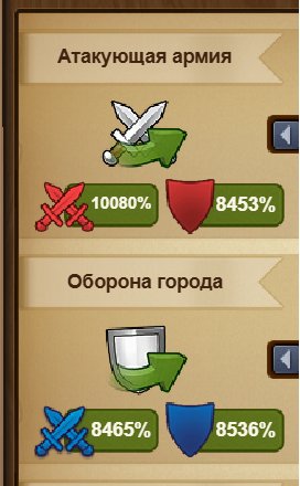Атака/защита города/полей/экспедиции и квант ниже в скринах. (Без доп усилений! Даже храм и турнирные поля не включены!)