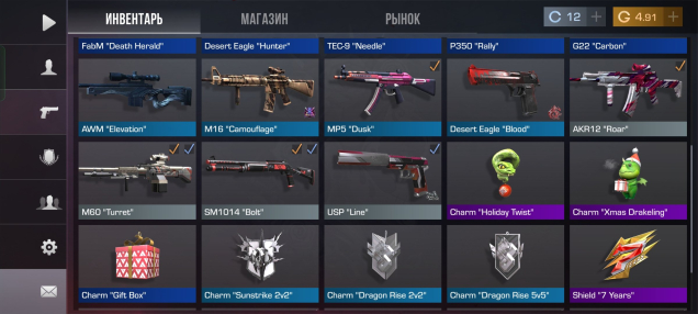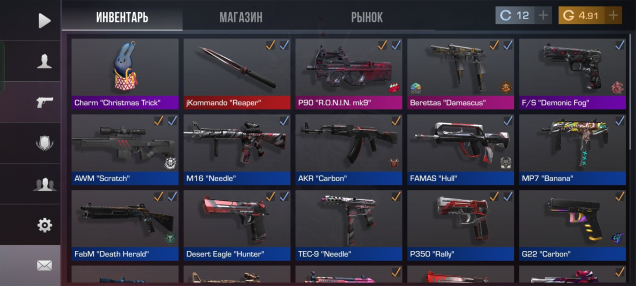 Редкие скины: AWM Elevation/Scratch, M16 Needle/Camouflage, P90 R.O.N.I.N mk9, F/S Demonic Fog, FabM Death Herald, TEC-9 Needle, USP Line и др.
