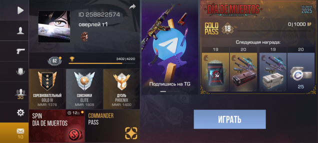 Звание: Gold lКраткое описание: 🌼❤️🔥КУПЛЕН БП + ТОП ИНВЕНТАРЬ❤️🔥🌼👹🔥ЗВАНИЕ ELITE + ТОП КД🔥👹🥶☠️УСПЕЙ!!!☠️🥶