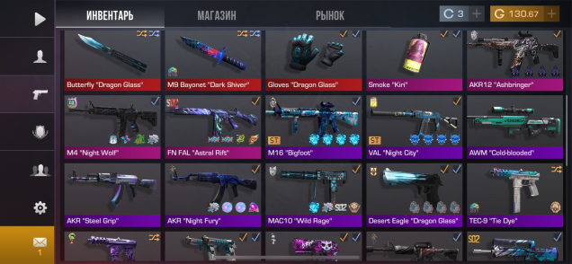 Подробное описание: 💀 На аккаунте М9 “Dark Shiver” и Butterfly “Dragon glass” с перчатками “Dragon glass”