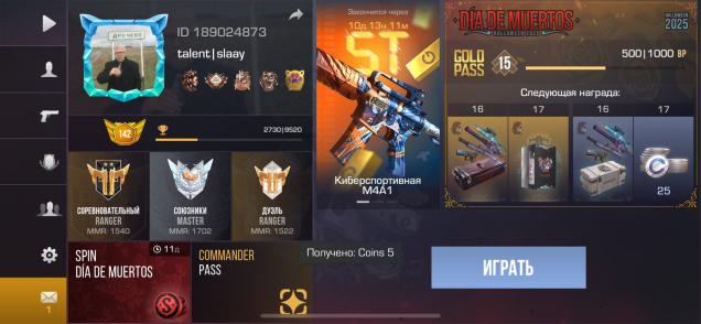 Звание: PhoenixКраткое описание: 👾Акккаунт с 🔪ножом🔪 и 🧤перчатками 🧤+ Пасс