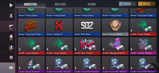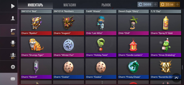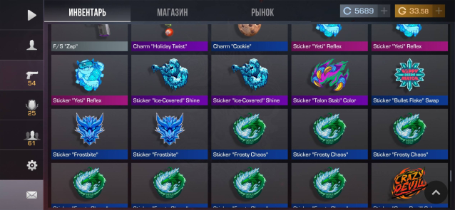 ▪︎ На аккаунте в общей сумме скинов, брелков, наклеек на 30к голды, 3 ножа, 2 перчаток, очень много аркан. Боксов на 5000+ серебра (в том числе среди них много sharp и empire боксов которые продаются только на рынке за голду) и на балансе еще 5.6к.