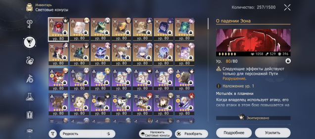 Из 5🌟 конусов на акке есть: О падении Эона, Что-то незаменимое (сигна Клары), Круиз по Галактике, Ад горящих идеалов (сигна Арчера), Мертвецкий сон (сигна Янь Цина), В ночи (сигна Зеле), Беспрерывные вычисления, Ночь на Млечном пути (сигна Химеко), Одинокое Исцеление, Материя памяти, Момент победы (сигна Гепарда), Время никого не ждет (сигна Байлу), Не падет занавес памяти, Звездному свету во Тьме (сигна Темени)