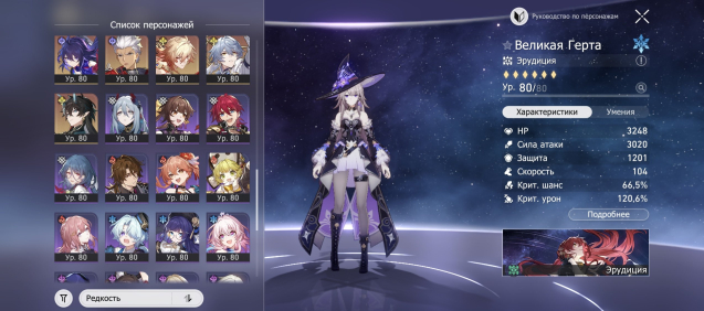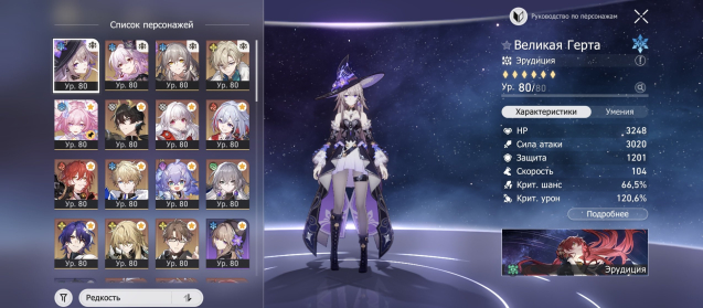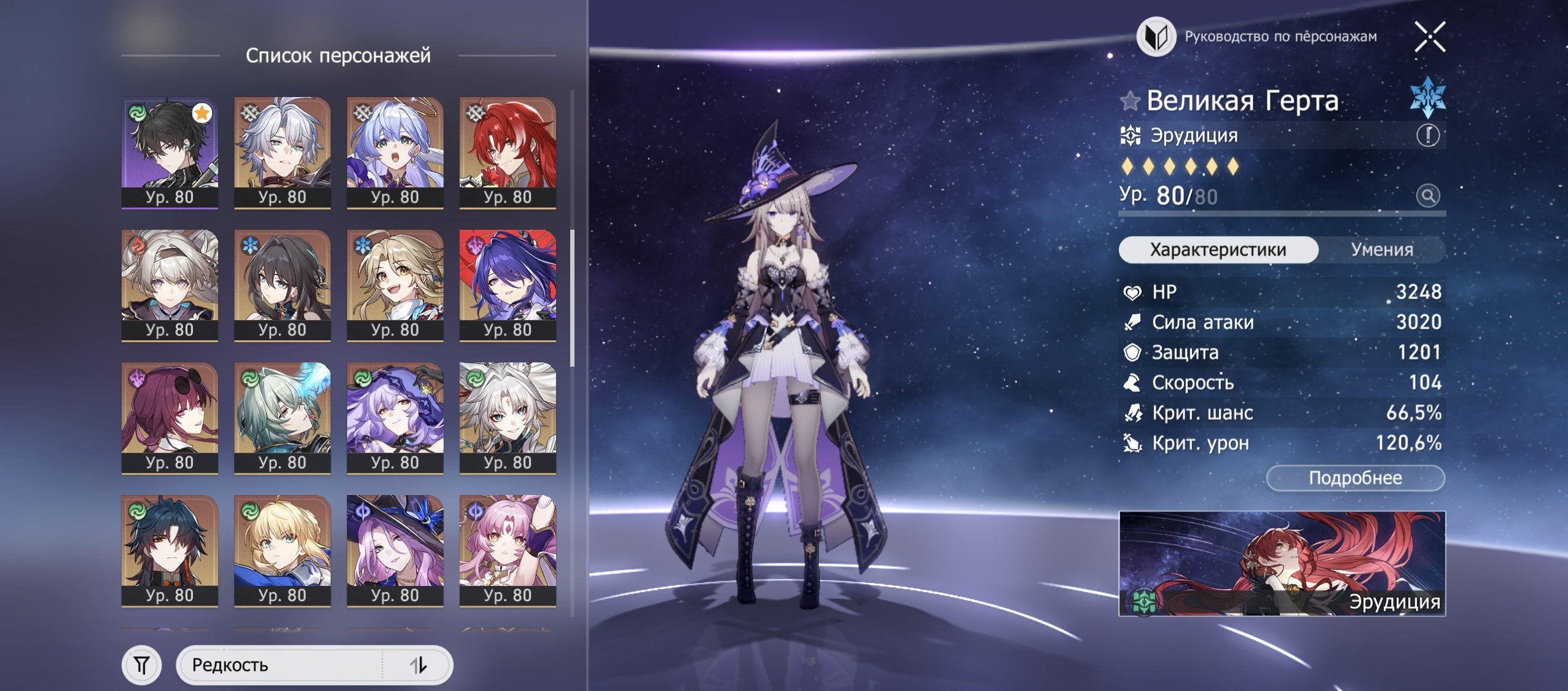 Из 5🌟 персонажей на аккаунте есть: Великая Герта, Темень(с сигной), Авантюрин, Элизия, Дань Хэн: Пожиратель Луны, Доктор Рацио, Лоча, Фаенон, Зарянка, Аргенти Е1, Светлячок, Жуань Мэй, Ахерон, Кафка, Анакса, Черный Лебедь, Фэйсяо, Блейд, Сайбер, Яшма, Фу Сюань, Зеле(с сигной), Арчер(с сигной), Мидей, Воскресенье, Дань Хэн: Освободитель Пустошей, Топаз, Клара Е2, Химеко Е1, Гепард, Байлу Е2, Броня Е1, Вельт Е3, Янь Цин Е6