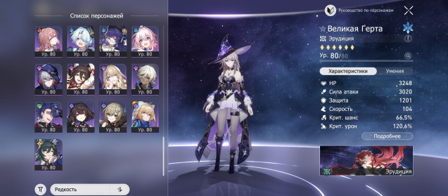 Уровень Освоения макс — 70. Играю с самого первого дня появления в свет хонкая. Аккаунт очень везучий на легендарки. Все локи, кроме вышедших в последнем обновлении зачищены на 100%, Расходящаяся и Виртуальная вселенные закрыты на фулл, как и Зал забвения. Имеется скин на Март7, абсолютно все обои на смартфон, а также клыкопир и пузырик из питомцев. Персонажи хорошо качаны, контент закрывается без особого напряга🙌