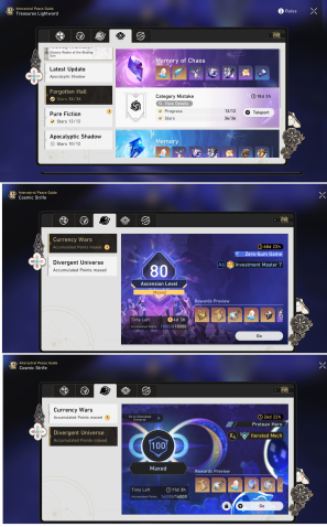 Остальные четверки: Наташа Е6, Юйкун Е6, Март 7 Охота/Сохранение Е6, Моцзе Е6, Гуйнайфэнь Е6, Сюэи Е6, Сампо Е5, Миша Е5, Хук Е6, Ханья Е2, Сушан Е3, Лука, Сервал Е3, Арлан Е4, Дань Хэнь Е4, Цинцюэ Е3.