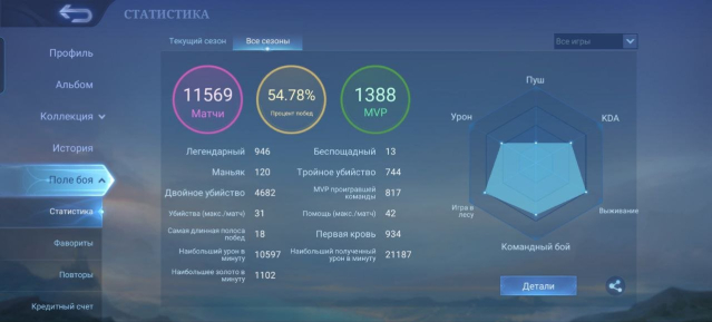 Процент побед: 54