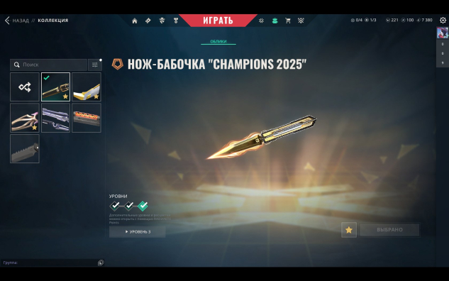 ⚜️Ножи: Нож-бабочка «Champions 2025», Керамбит Прайм//2.0, Кунаи «Таинственный цветок», Клинки «Тайна кругов», Спиралевик „Крутящий момент“