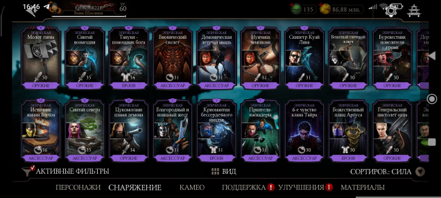Очень прокаченный аккаунт , есть много бруталити , френдшипов и куча снаряги для башни, 105 душ, 86880000 золота, 54 алмазных карт