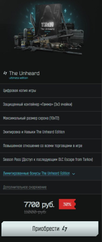 ● Edge of Darkness Limited Edition ( Владельцы издания EOD имеют Escape from Tarkov: Arena бесплатно и будут иметь приоритет при получении доступа в будущие волны, а также бесплатный доступ ко всем последующим DLC Escape from Tarkov. Более купить версию EOD на сайте игры нельзя)